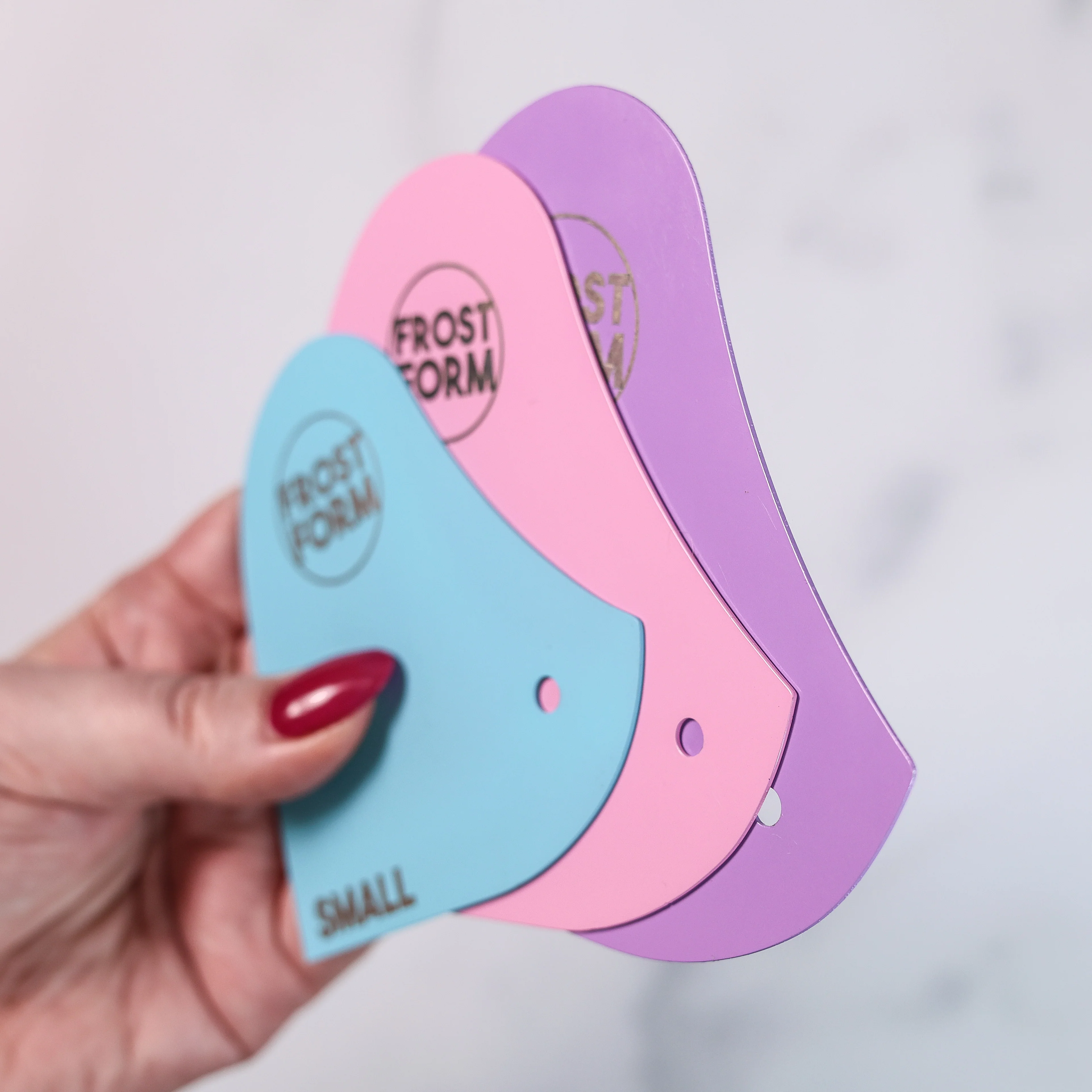 Our Frost Finisher Scrapers come in a set of three specialized detailing scrapers, designed for your FROST FORM™ cakes and more.