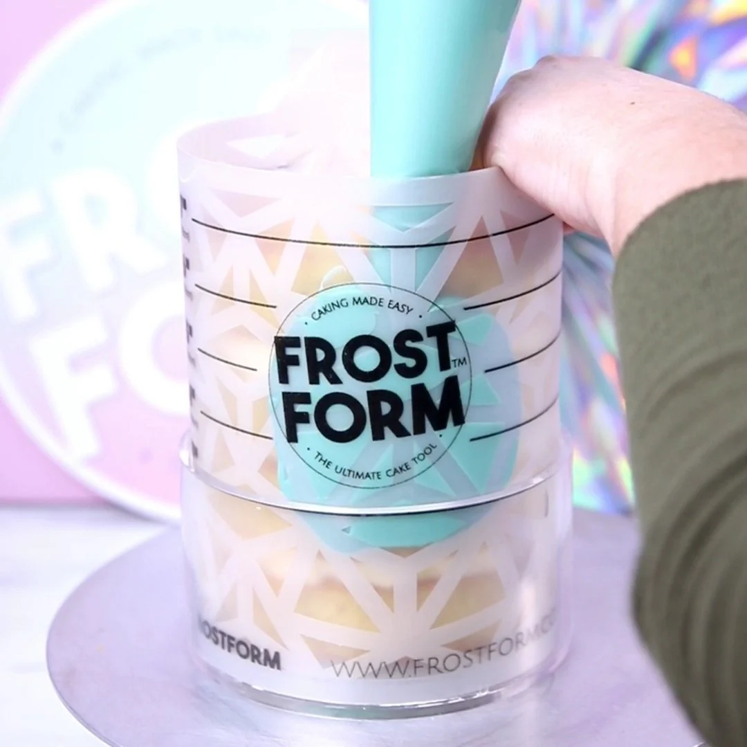 You can also use your Frost Form ™️ stencil to stencil your cakes as normal. The Extra Large Stencil wraps the whole way around your Perfectly straight cakes made using your Frost Form. This means you can stencil your cake in one go and no fuss with little to no room for error. YAY!